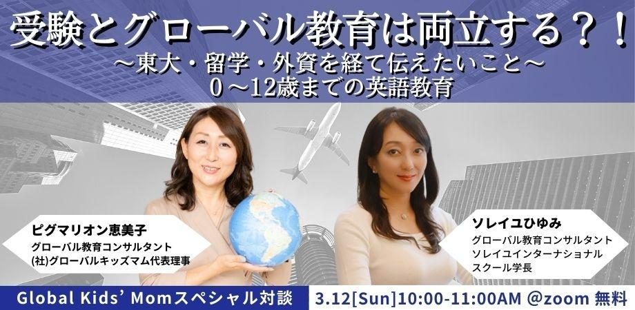 『受験とグローバル教育は両立する?!』ー東大・留学・外資を経て伝えたいこと・0~12歳までの英語教育ーソレイユひゆみ×ピグマリオン恵美子Global Kids' Momスペシャル対談【録画配信有】